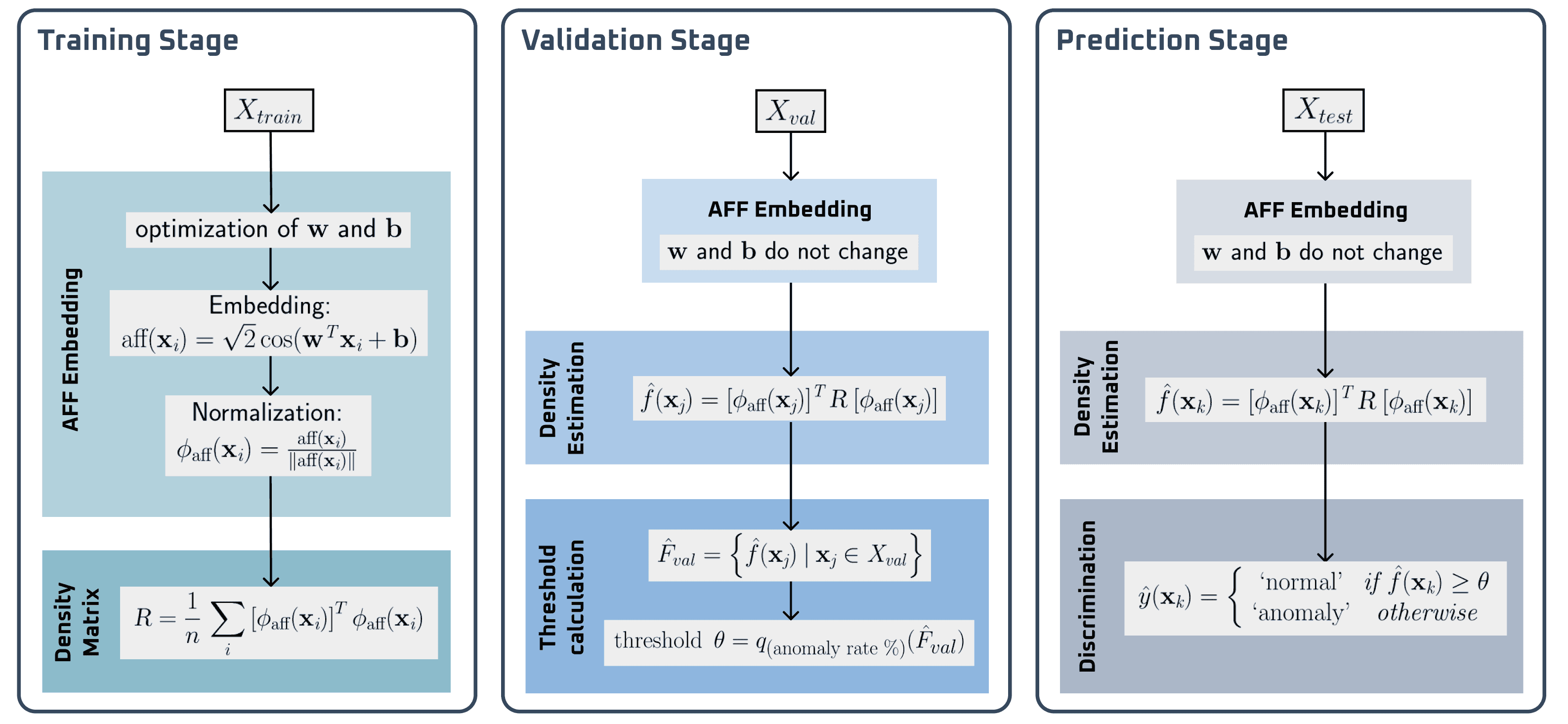This paper presents a novel density estimation method for anomaly detection using density matrices (a powerful mathematical formalism from quantum mechanics) and Fourier features.